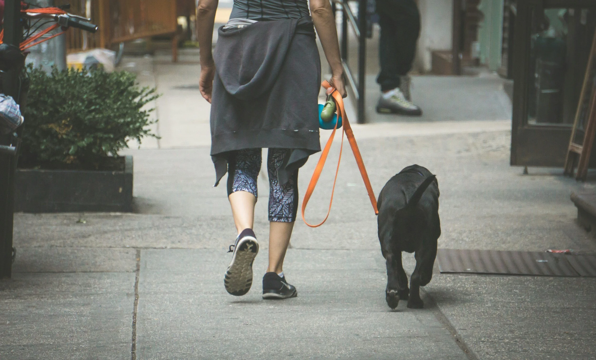The first thing you’re going to want to work on with your dog is teaching them to position themselves at your side facing forward (classic" “heel” position). Begin with your dog on leash, stationary next to you, and mark/reward them for being in this spot – it serves as the starting point for establishing a solid loose leash walking foundation. Have your dog practice finding this position from all angles. Set up a training session to have your dog practice targeting this spot with tossed treats used to reset the exercise for another round of practice. For example, toss a treat and then lure the dog back into the position at your side. Mark and reward at your side and then release the dog with a tossed treat to reset the exercise for another round of practice. This can be an easy step to overlook but it will be even more important as you begin adding motion and walking around. Consistency is key during this stage. Ensure you mark and reward your dog consistently to build a strong reinforcement history. This will lay the groundwork for the next steps in the training process.